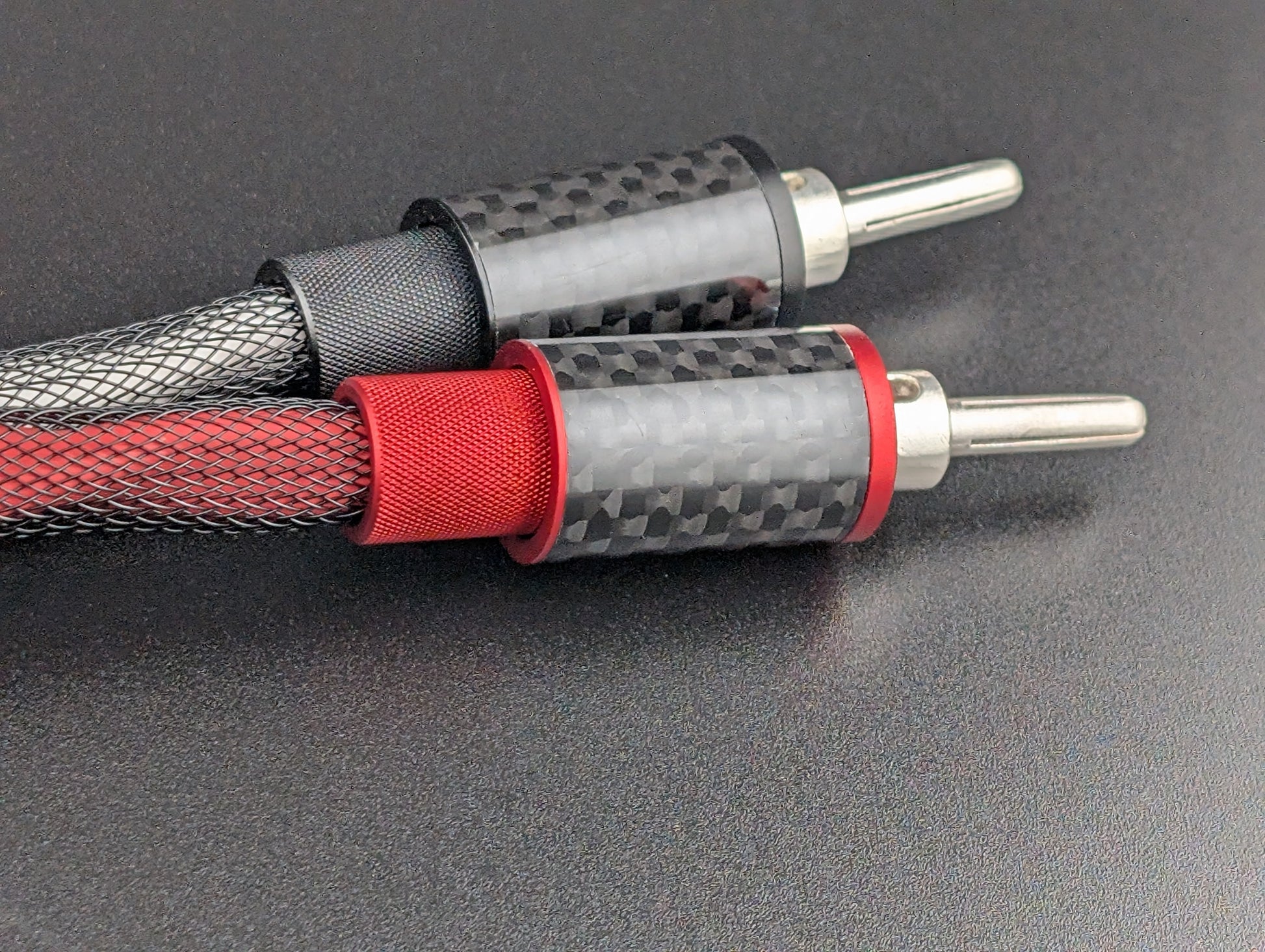This listing is for our usual configuration which means a 2.5m pair of Aperta SE speaker cables with the locking banana connectors all around. Special builds are available by request - we have a matching spade connector made from pure silver with the carbon fiber/aluminum shell, and we can do custom lengths or even combo banana/spade designs as needed. Please contact us to discuss a custom build.